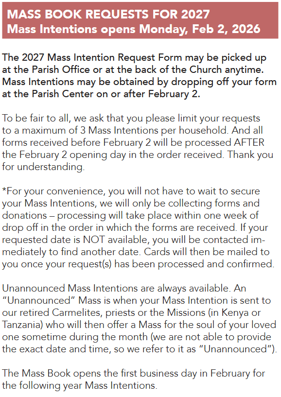 Want to Request a Mass to be Offered for Your Intention in 2027?