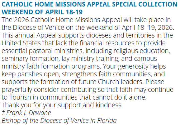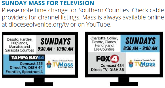 Home Bound – See Archive Above, Venice Diocese Sunday Mass or