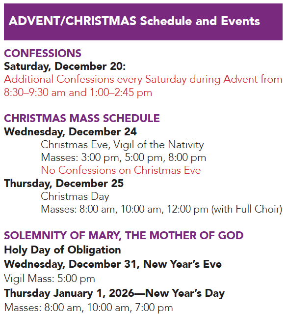 Saturday 2-2:45PM, 4-4:45PM in the Chapel