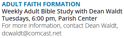 Also, online there are free Adult Catholic Education programs. To find out more click on the logo or links below.