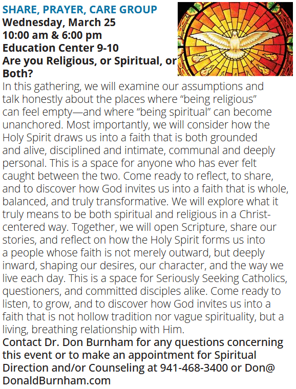 TO LEARN MORE ABOUT US; PLEASE CONTACT THE PARISH OFFICE (941) 497-2931 or claudiamarie.mendez00@hotmail.com
