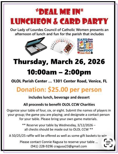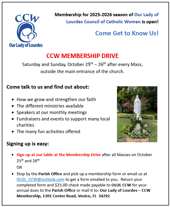 Note for home use: Some of the links above to “Formed” require you to set up an account (it’s free.) We all like FREE don’t we? Our parish pays for you to get the best Catholic teaching videos, books, and audio talks to deepen your relationship with Christ and his Church all in one place on most smart phones, tablets, and computers. Go to Formed by clicking HERE and Register…one time…Enter “Our Lady of Lourdes Venice Fl” then register your name and email address. That’s it! Every time you now click on the link above or FORMED content on this webpage you will be taken directly into the FORMED website with access to all the content. As an added feature, they have the FORMED APP. I have personally loaded the free APP (from the APP store on my phone) and again, logged in the first time. Now…as soon as I click on the FORMED APP it opens directly into all the content they have available. Cool Stuff! Users can sign on to ROKU, Amazon Fire, TVOS and and any smart T.V.