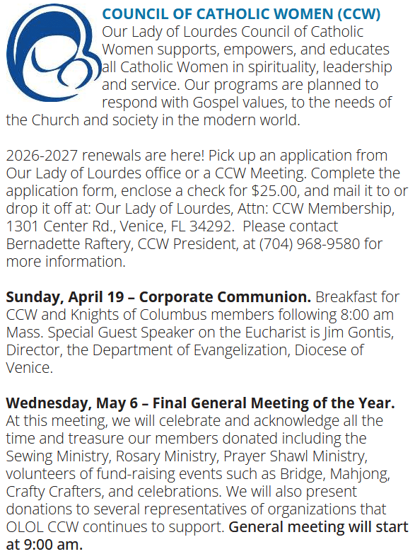 Note for home use: Some of the links above to “Formed” require you to set up an account (it’s free.) We all like FREE don’t we? Our parish pays for you to get the best Catholic teaching videos, books, and audio talks to deepen your relationship with Christ and his Church all in one place on most smart phones, tablets, and computers. Go to Formed by clicking HERE and Register…one time…Enter “Our Lady of Lourdes Venice Fl” then register your name and email address. That’s it! Every time you now click on the link above or FORMED content on this webpage you will be taken directly into the FORMED website with access to all the content. As an added feature, they have the FORMED APP. I have personally loaded the free APP (from the APP store on my phone) and again, logged in the first time. Now…as soon as I click on the FORMED APP it opens directly into all the content they have available. Cool Stuff! Users can sign on to ROKU, Amazon Fire, TVOS and and any smart T.V.
